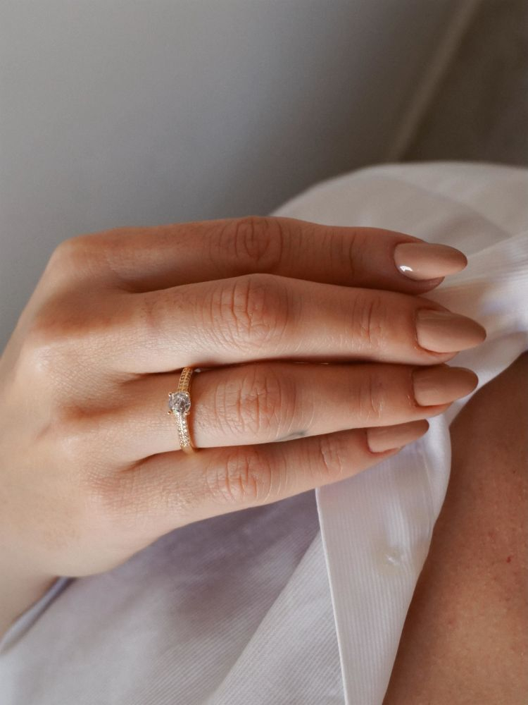 ANEL SOLITÁRIO 2 FILEIRAS CRAVEJADAS - BANHADO A RODIO BRANCO