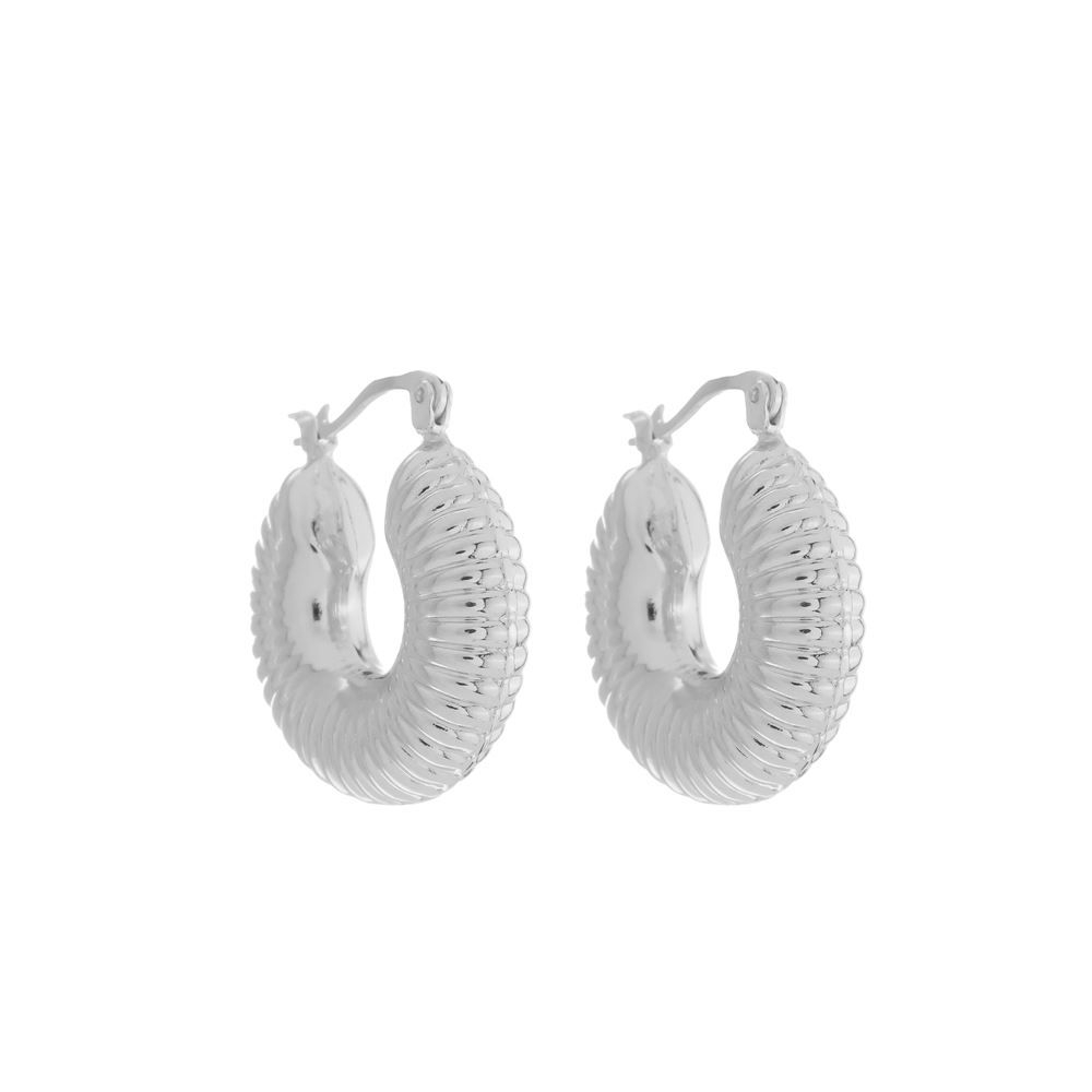 BRINCO ARGOLA FECHO ITALIANO BRUNA - BANHADO A RODIO BRANCO